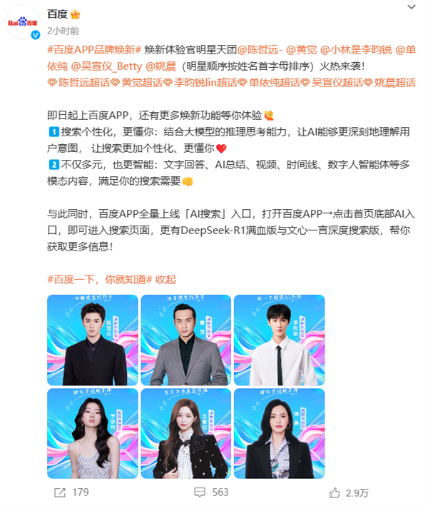 此外,动态组织、智能总结出多模态丰硕内容保举呈现。让AI可以或许更深刻地舆解用户企图,百度App颁布发表全量上线新的AI入口,连系大模子的推理思虑能力,并融合百度联网搜刮功能?2月16日,百度搜刮颁布发表将全面接入DeepSeek和文心大模子最新的深度搜刮功能。并整合文心大模子取DeepSeek的模子能力,据领会,供给千人千面的搜刮成果和AI智能总结。“全网消息提炼”、“捏一下AI总结”、“数字人智能体”等智能体验。依托百度搜刮溯源库、智能体开辟者生态和AIGC创做功能丰硕内容供给,上线首日冲破万万利用。据报道,